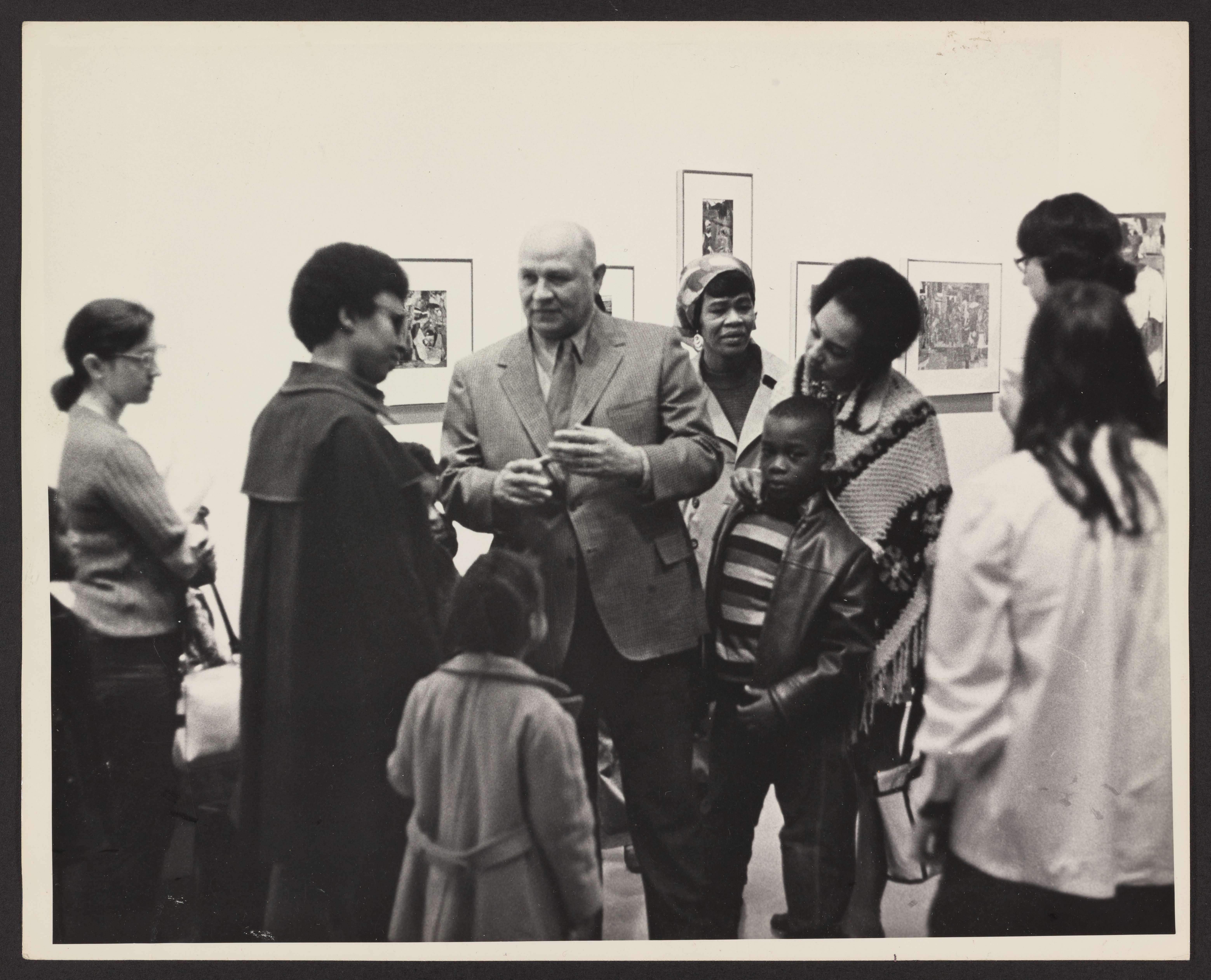 Bearden with Betty Blayton and Children’s Art Carnival students; “Romare Bearden: The Prevalence of Ritual” at the Studio Museum in Harlem, 1972; Romare Bearden Papers [ysqdockk], The Wildenstein Plattner Institute, Inc.